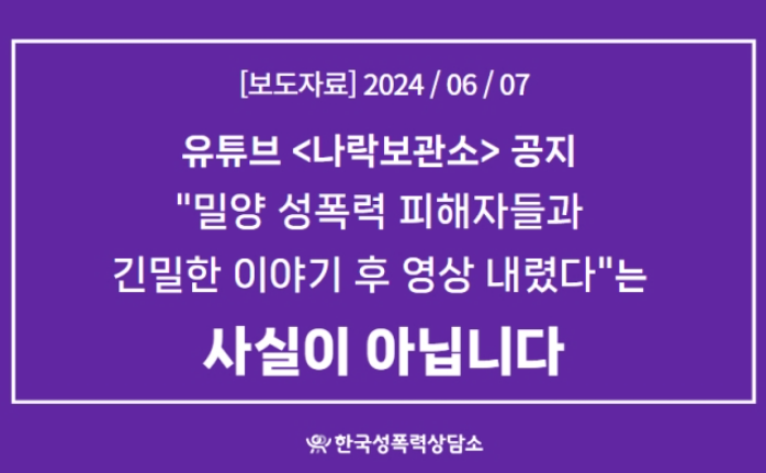 한국성폭력상담소는 피해자가 영상 업로드에 동의한 적 없다는 입장을 발표 하였고, 이에 나락 보관소는 피해자 여동생과 남동생에게 확인 메일을 보냈으나, 연락이 두절되었다고 밝혔습니다.